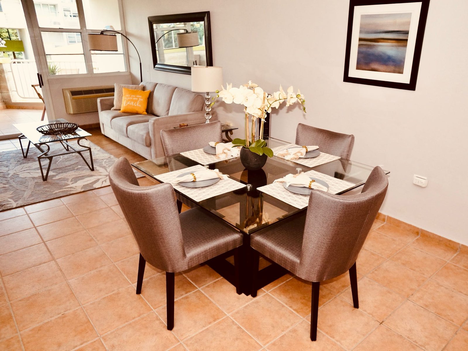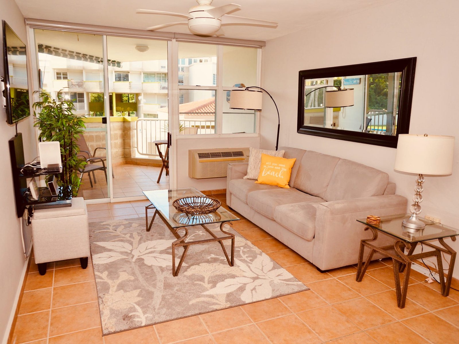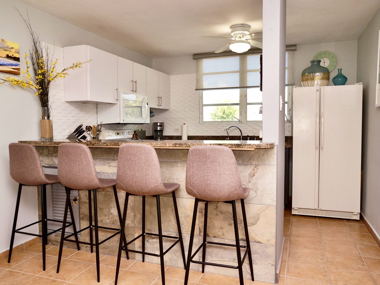 This deluxe beach vacation apartment for up to 6 guests is in a private, gated beach community on a vast and beautiful beach, minutes from El Yunque Rainforest, Luqillo Beach, Rio Mar golf course, restaurants, attractions, and nightlife. San Juan Airport is 35 minutes by car or taxi. Explore the Rainforest, day sail on a catamaran to nearby islands, ride horses at a nearby farm, zip line across the Rainforest, play 18 holes at world-class courses, kayak the bio-luminescent bay, or relax. The beach condo is elegantly decorated and equipped with the most modern amenities, including Smart TVs with cable, AC in every area, Bluetooth speakers in every room, and a large capacity washer and dryer. Our gated beach community provides privacy and security. This second-floor apartment has a private access hallway for convenience and privacy. The private grounds have a pool, tennis, volleyball, basketball courts, a playground, and a kids' pool.